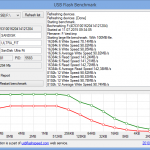Das Ergebnis ist ernüchternd. Ja, in bestimmten Tests erreicht der USB Stick kurzzeitig Schreibraten um die 100 Mb/s. Diese sind jedoch ganz stark von der Größe der zu schreibenden Daten abhängig. Bis ca. 16 Mb Größe scheint ein Cache die Daten aufzunehmen, danach fällt die Schreibrate ab und pendelt sich auf ca. 50Mb/s ein. Das ist kein schlechter Wert, aber bei weitem nicht die versprochenen 110MB/s.